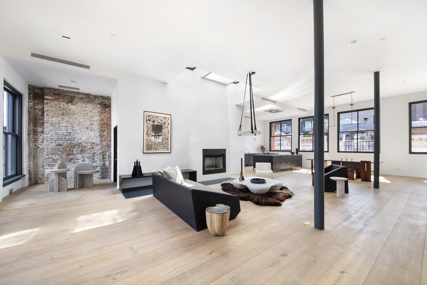 Designed by Day's End Architects, this expansive full-floor residence welcomes you inside with 8-12 inch wide-plank floors, soaring 12-foot ceilings, radiant heated floors throughout, numerous skylights and abundant (20) windows on all four exposures. A key-locked elevator delivers you directly to the gracious foyer lined with exposed brick and custom closets. A row of bright and massive, south-facing windows ushers you into the extraordinary great room. Stretching over 43 feet wide, this sprawling space accommodates seating and dining areas alongside designer lighting and a wood burning fireplace.The open chef's VIPP kitchen embraces sleek minimalism with custom cabinetry, a massive center island and artfully concealed, upscale appliances.